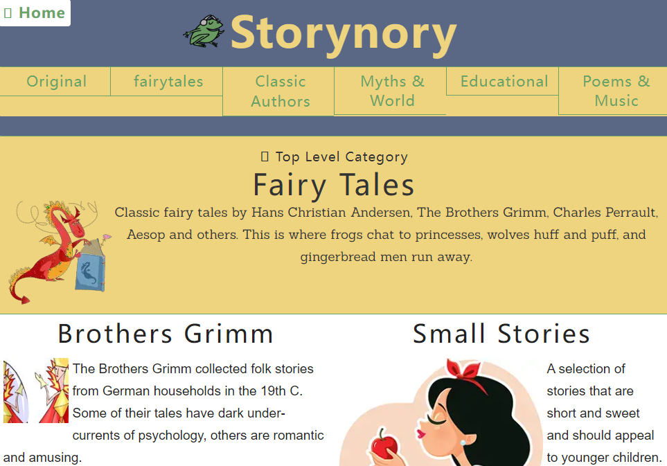 Storynory is an audiobook reading website designed for kids, with a fairytale-style page design. The reading website includes children’s books on multiple themes such as Original Stories, Fairy Tales, Classic Authors, Myths and World Stories, Educational Stories, Poems and Music, etc. These children’s books are available in both text form and audio that can be downloaded for free.