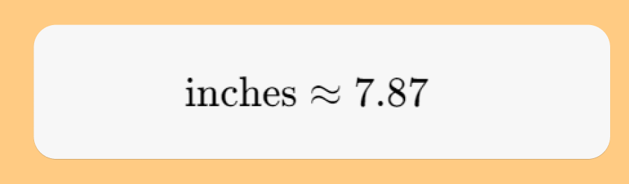 - 20 cm × 0.3937 in/cm = 7.87 inches